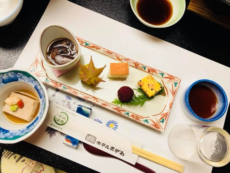 擁有400年歷史的「小川溫泉」新舊館比鄰,塌塌米房間旁的小溪,打開窗時溪水潺潺,伴著睡眠頗有一番情調。晚餐的傳統和式料理更不在話下,晚餐後在露天溫泉享受著難得的安靜時光,如此愜意,如此詩情畫意。