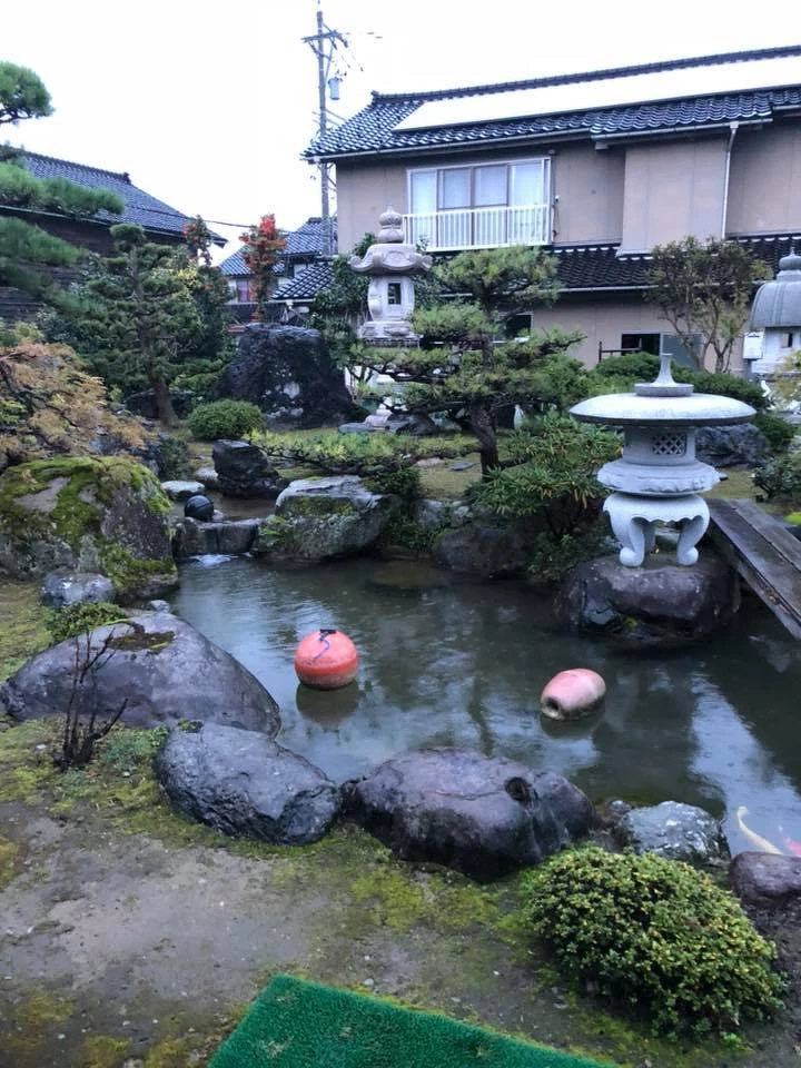 雨絲毫沒有要停下的意思,氣溫也跟著降了下來,來到晚上即將Home Stay的「坂口家」,夫婦倆早就在門口熱情地迎接我們,頓時寒氣全消,讓人感受到暖暖的溫情,偌大的日式庭院,雨水打在池子中,錦鯉在其中悠游,坂口先生一下呼喊起來,幾隻野鴨便從一旁竄出,超級可愛。傳統和式的屋內過去只能在電視節目中看見,過去曾是武士家族,坂口家有著漂亮的「扁柏」家徽,有個小房間專擺男主人的收藏,武士刀、彩繪屏風、能劇面具等等,當坂口先生興致一來,講了一整個下午的故事。晚餐再度是一桌子豐盛的和式家常料理,雖然不太能準確明白他們口中字句意義,但相信應該充滿的是滿滿的歡迎吧!