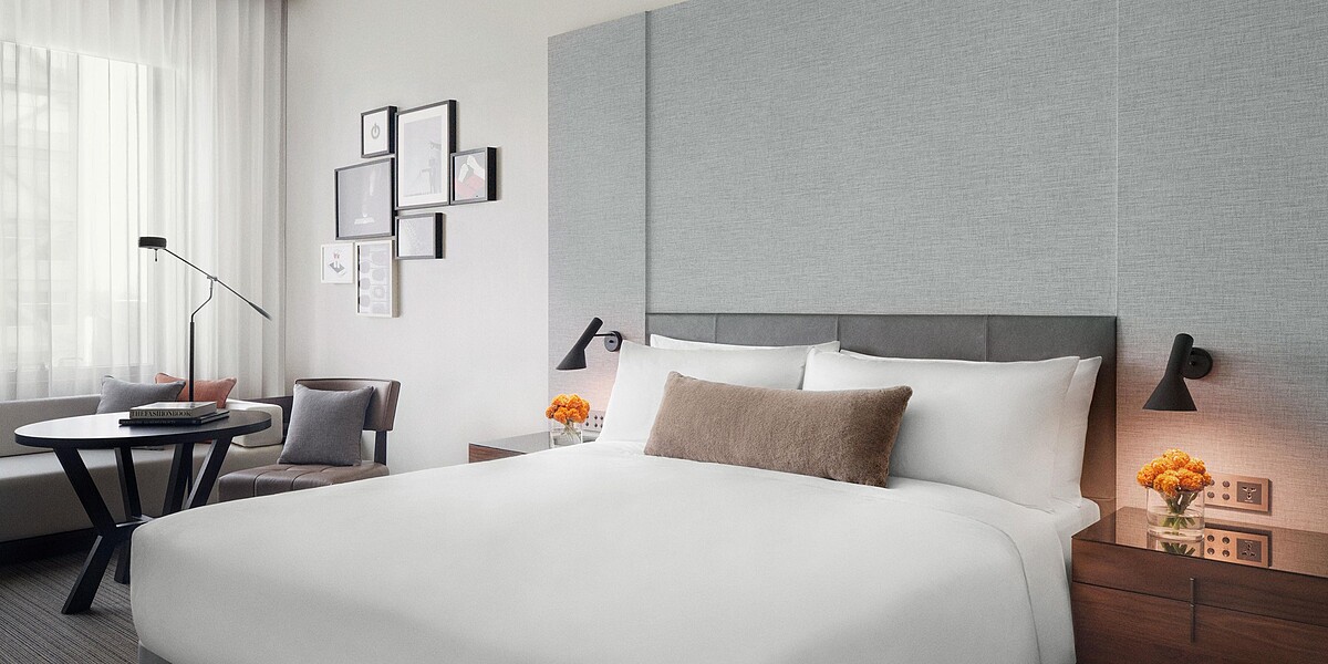 有別於一般商務飯店的設計,新竹英迪格酒店主打潮流風格,選用來自於日、法混血的新銳傢具品牌「Stellar Works」,以新潮概念、紅色元素,為英迪格酒店打造全新飯店的形象。
