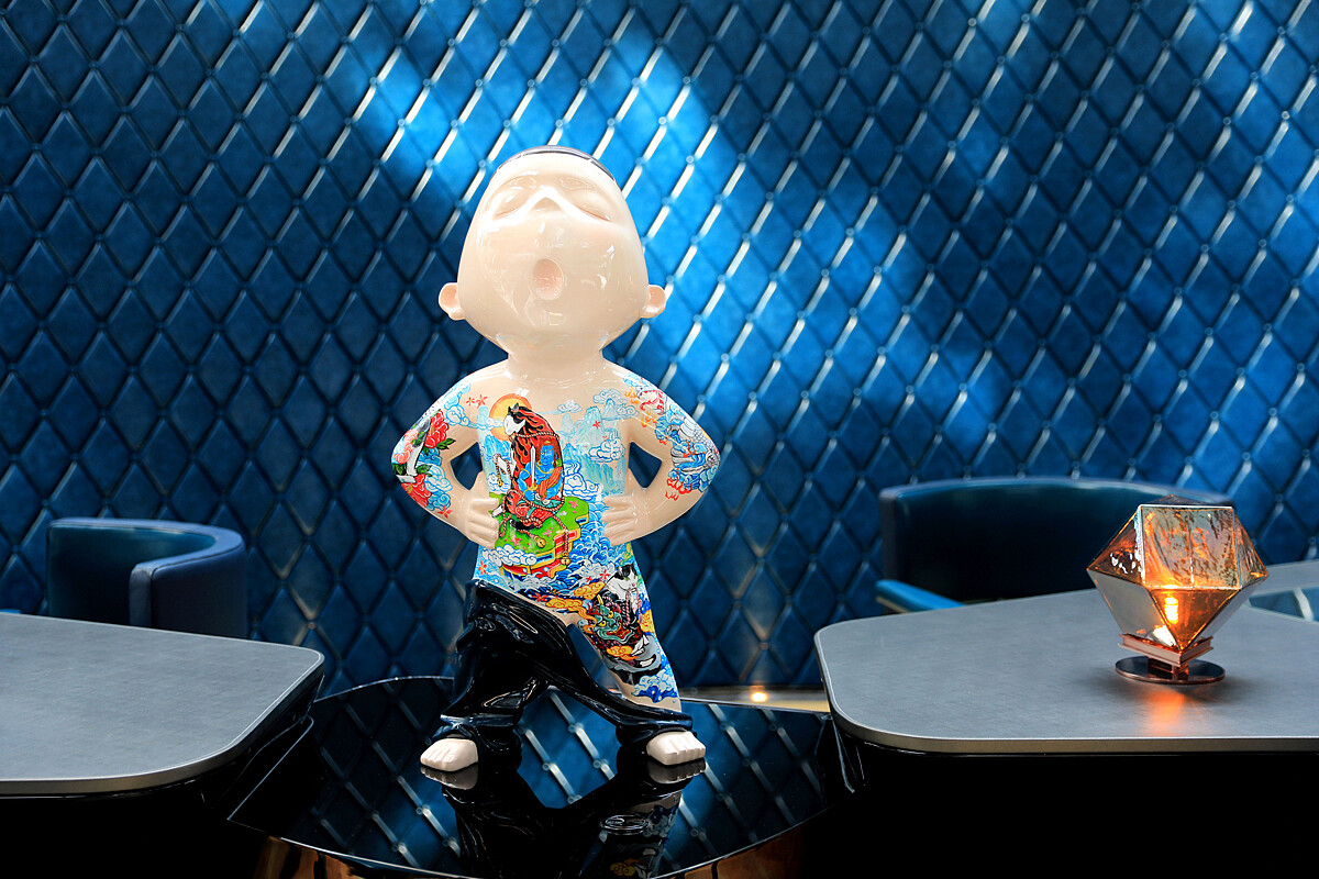 (西安W飯店 Whatever/Whenever 服務櫃檯前的可愛藝術作品。)