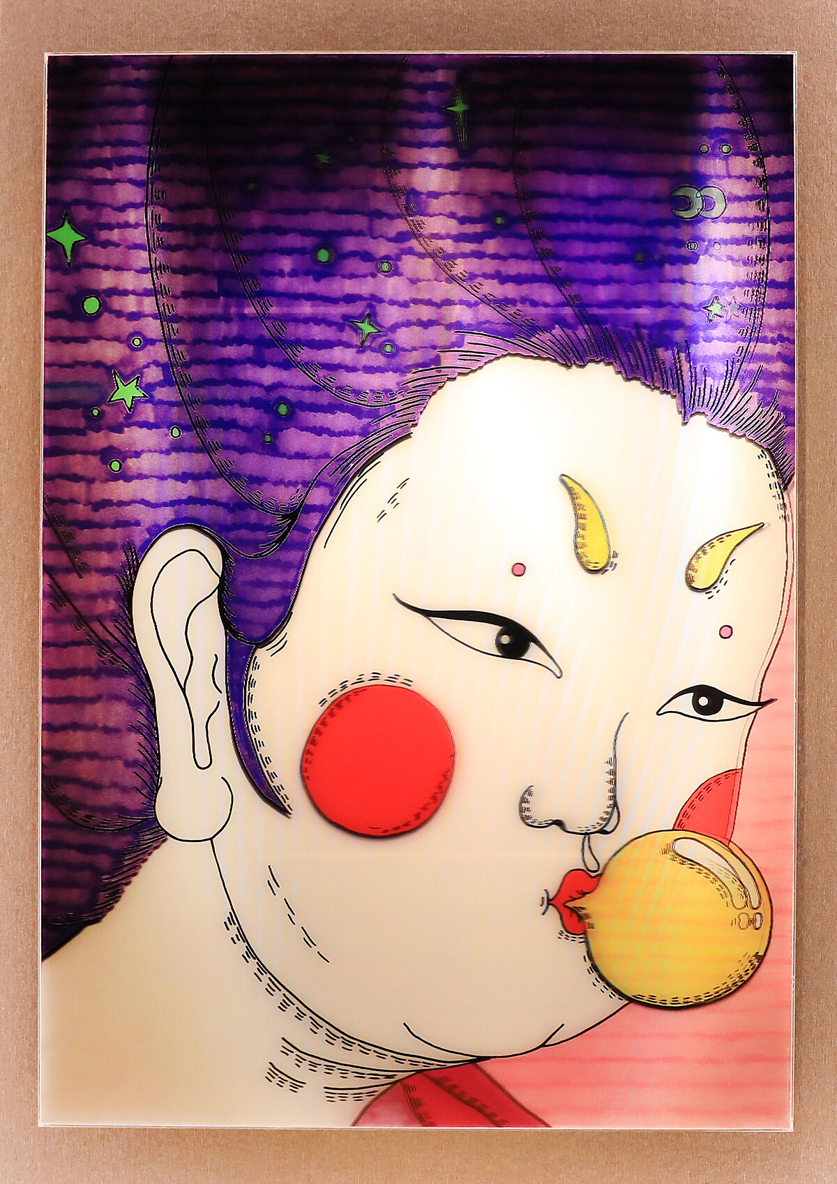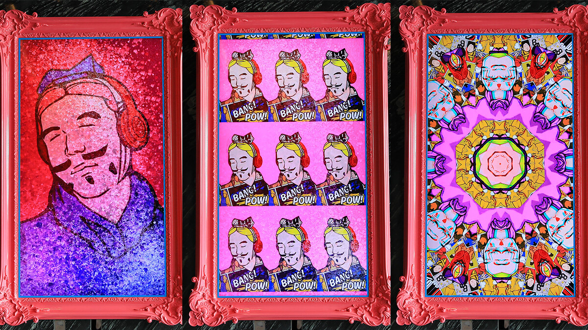 (以楊貴妃為主角,融合當代技法呈現的裝置畫作。)