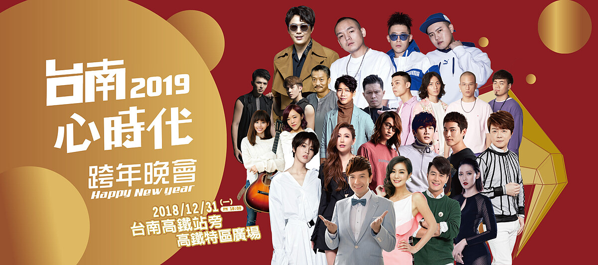 以台南獨有的文青藝術氣息為題,今年跨年晚會邀請到宇宙人當開場嘉賓,還有翁立友、茄子蛋、愷樂、蕭煌奇及壓軸演出的玖壹壹,將帶來一連串療癒、慢步調、台式嘻哈專屬台南的跨年晚會。