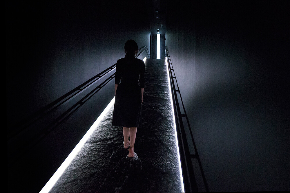 原型發想自四國的深山中自然瀑布的作品「光之瀑布—四國的深山」(2016-2017)將光照射在瀑布的水滴上,水滴瞬間幻化成光珠灑落而下,即形成光之瀑布。流動的瀑布成串光輝照亮四周,尤其在黑暗中,光珠相互呼應,集合成一線的空間視覺。