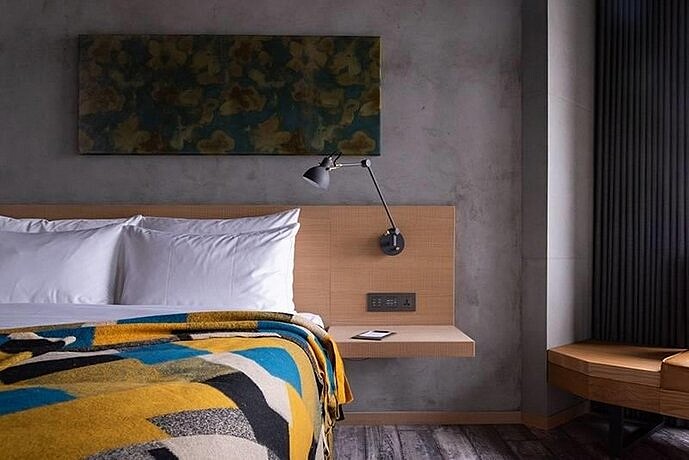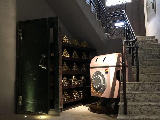 以一銀舊有金庫改建的建築主體,本身就充滿著懷舊的故事性。從公共空間到住房無一不展現台灣設計軟實力,從工業loft、現代古典到塗鴉童趣的風格,各自巧妙的運用在不同的場域間。打著”住在金庫”的獨家賣點,從大廳區域滿滿金條的裝置到金庫造型手把、金幣餐券、信用卡造型的房卡到以金庫保險箱為靈感的IP-寶比,用美學與巧思吸引各地旅客到此裝載滿滿回憶。