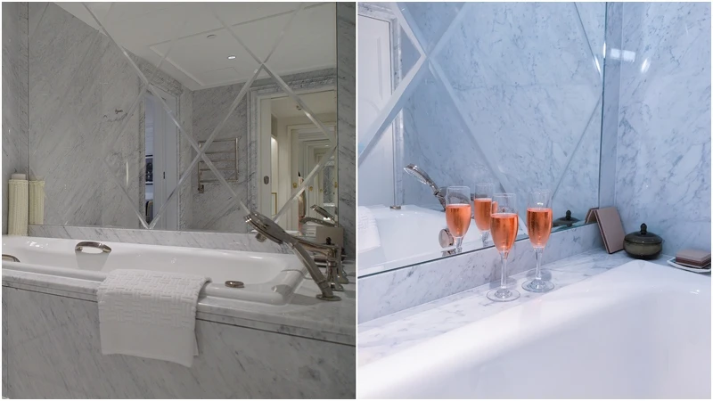 金沙集團旗下的澳門巴黎人酒店,在今年推出全新香檳套房房型,強調以暖色系的白色大理石紋為主軸,從進門的玄關、客廳、臥房一路到浴室,全都是絕美的大理石花紋打造而成,絕對可以滿足喜愛拍照的各種需求。