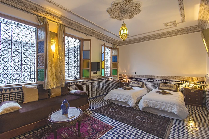 鄰近著名景點藍色大門和傳統市集的摩洛哥菲斯的里亞德阿爾瑪坎庭院旅館,是一間摩洛哥的傳統民宅,旅館內的裝潢風格,就彷彿華麗的宮殿般。此外,還能從露台上俯瞰古城區的夕陽餘暉,度過風情萬種的一千零一夜。
