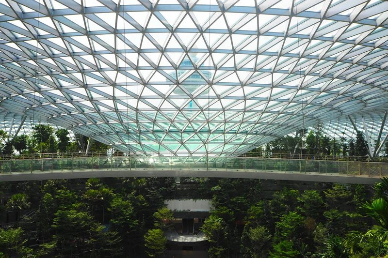 以穹形玻璃屋頂和充滿現代感的鋼材外觀設計為亮點,樟宜機場全新工程「星耀樟宜」串聯樟宜機場第一到第三航廈,包含機場營運、室內花園、娛樂休閒、酒店、與餐廳還有專賣店,不出機場也能大玩特玩。
