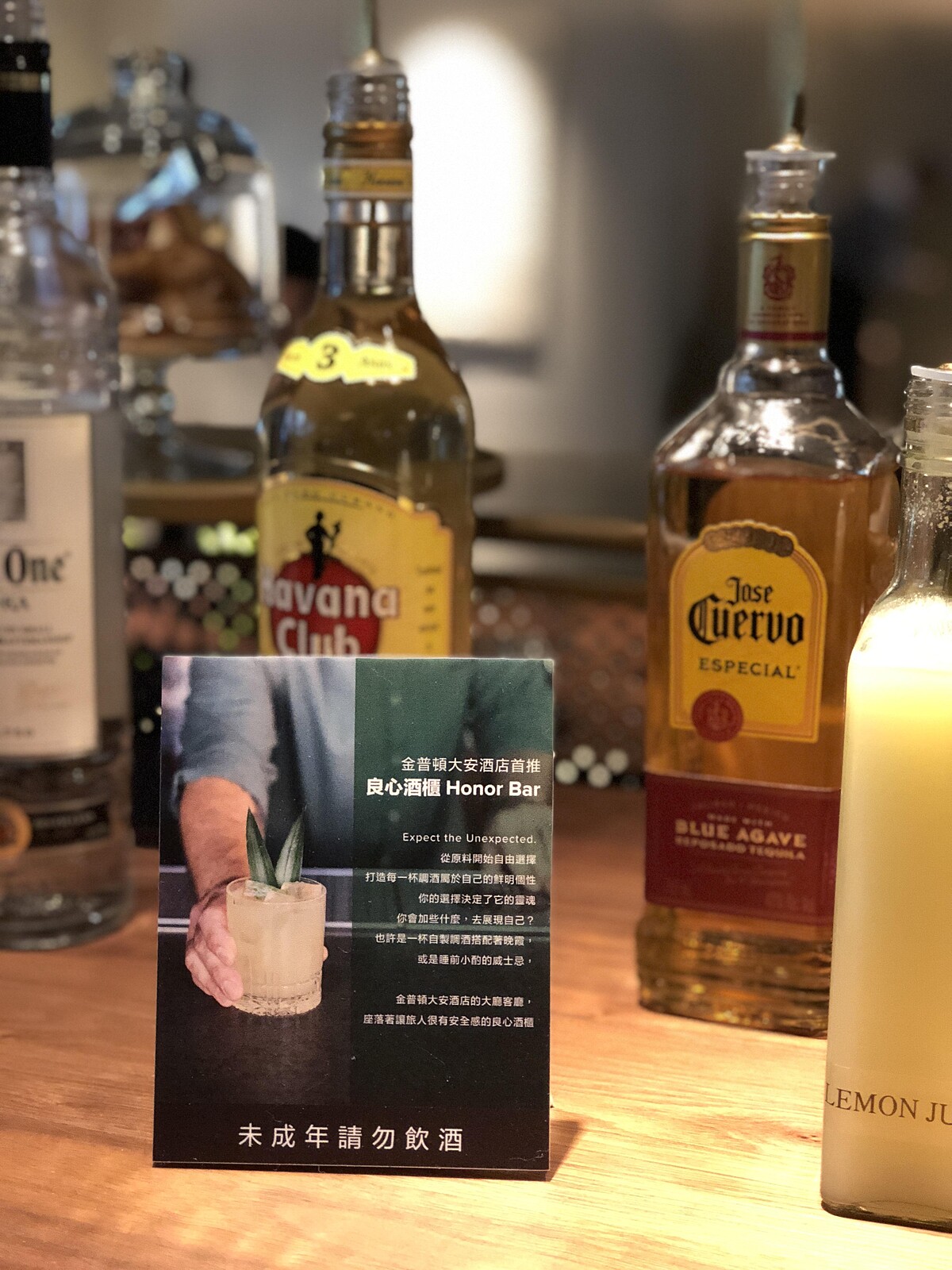 必須入住體驗!金普頓為住客品飲找來各種小驚喜:傍晚時刻特製台味季節調飲(這次我們就喝到了楊桃汁加酸梅為基調的調飲,真的很台味)、以及自己動手調製的自創調飲吧,住客都可以使用,調好後自行再透過網路系統掛帳的Honor Bar良心酒櫃區。
