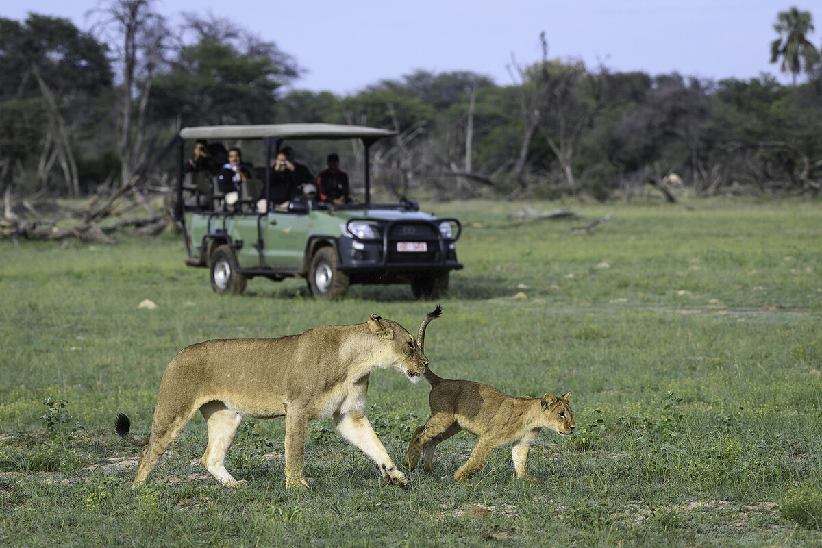 每一天,旅人清晨起床,吃著早餐,看著天空從藍色、紫羅蘭、粉色變成湛金色調,然後坐上車開始進行 Safari 之旅,四個小時跑不掉,但感覺起來不過是頃刻之事。運氣好的話,會遇到野鹿和象群前往水源處。懶散的大貓這時候正在樹叢睡午覺,燥熱的氣候,無論是再美味的獵物,這世上最兇狠的掠食者都不會行動。