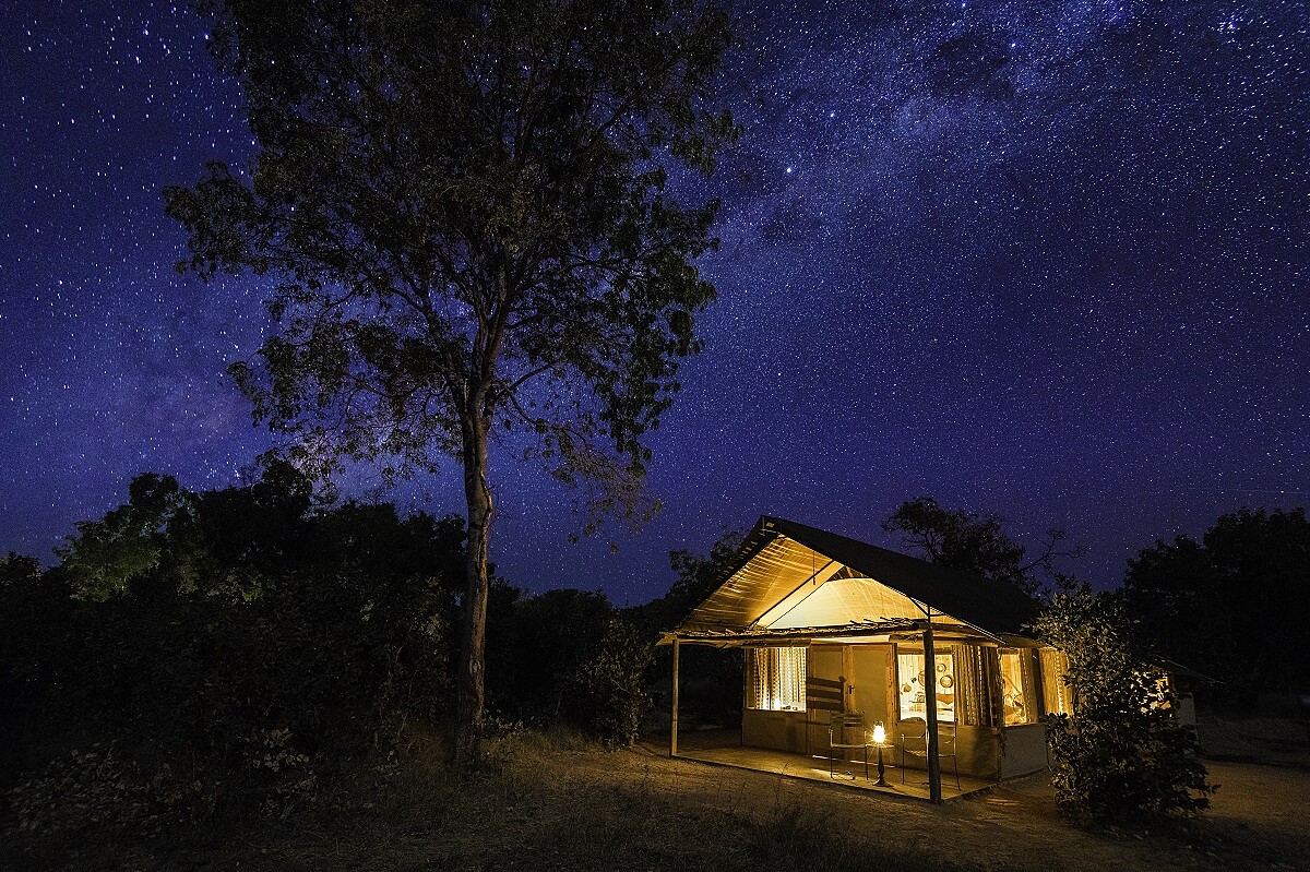座落於這樣的天然美景裡,Wilderness Safari 旗下的 Little Makalolo 是被歸類為「經典(Classic)」的營區。以非洲原始設計為主,黑白圖騰和木質傢俱營造出異國風情,舒適的床鋪和USB充電插頭讓這裡增添了幾分奢華氣氛。在此區的另一個營區 Linkwasha,則是增添了幾分歐陸設計況味,營地也帶了點設計酒店的風格,當然,最受旅人歡迎的「星空一宿」,更是來到辛巴威營區一定要嘗試的體驗。架高的木造建築通有電線,讓動物難以靠近,在安全的大前提下,你能在非洲草原上享受與野生動物一起入睡的浪漫奇幻體驗。