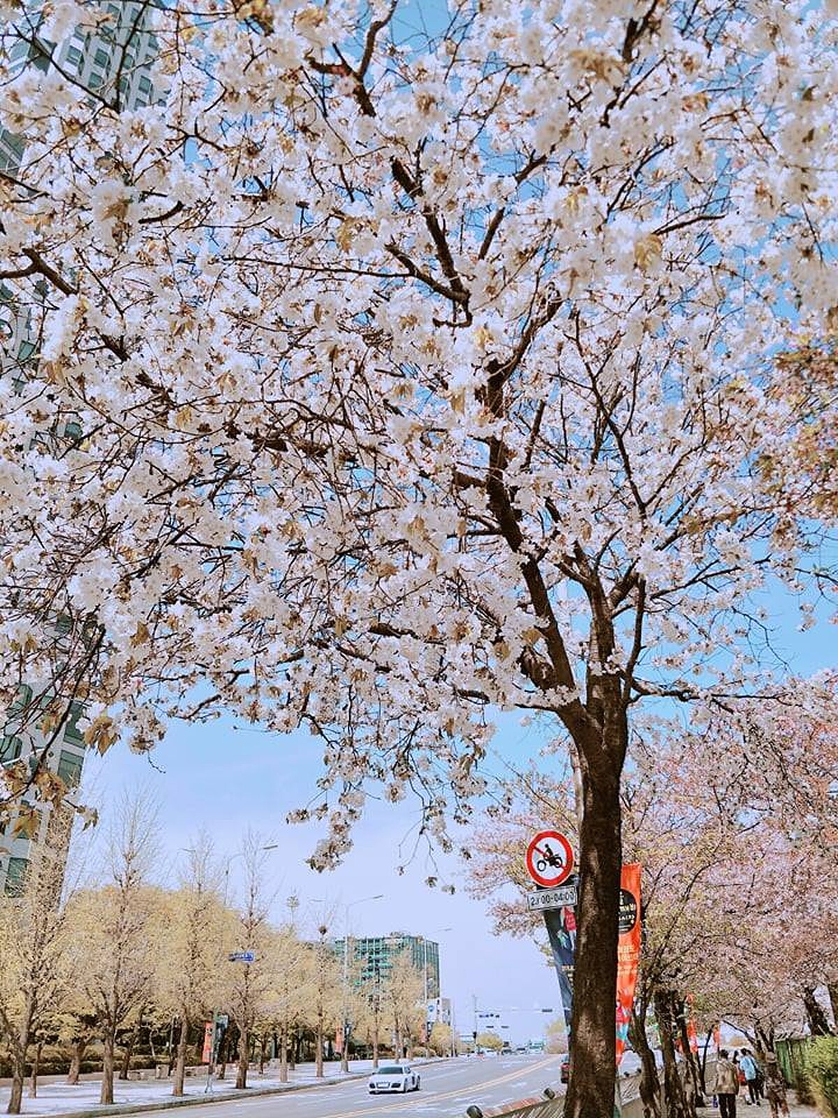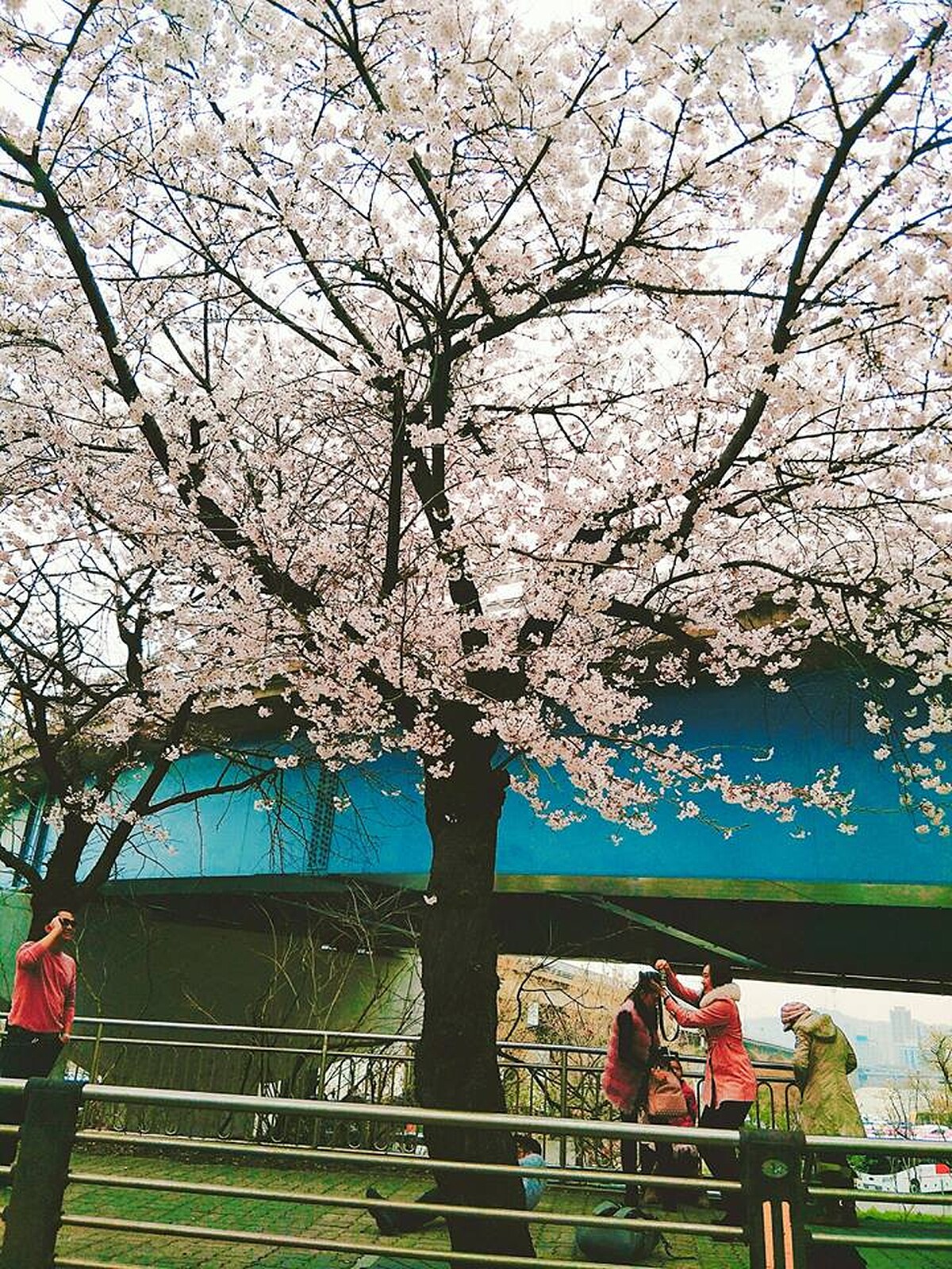 和日本的櫻花不同,目前在韓國看到的櫻花,大多屬於韓國的原生品種「王櫻花」,在色澤上明顯偏白,不像是日本的櫻花大多以粉嫩的視覺在大家心中留下印象。