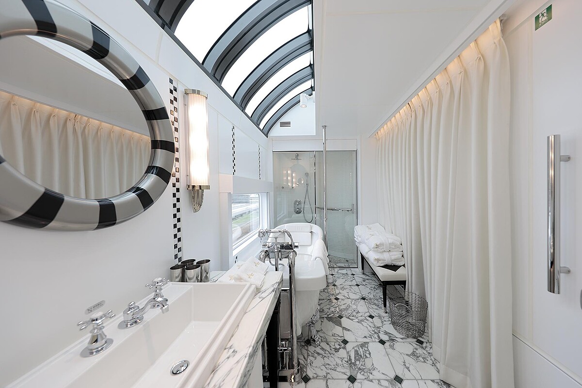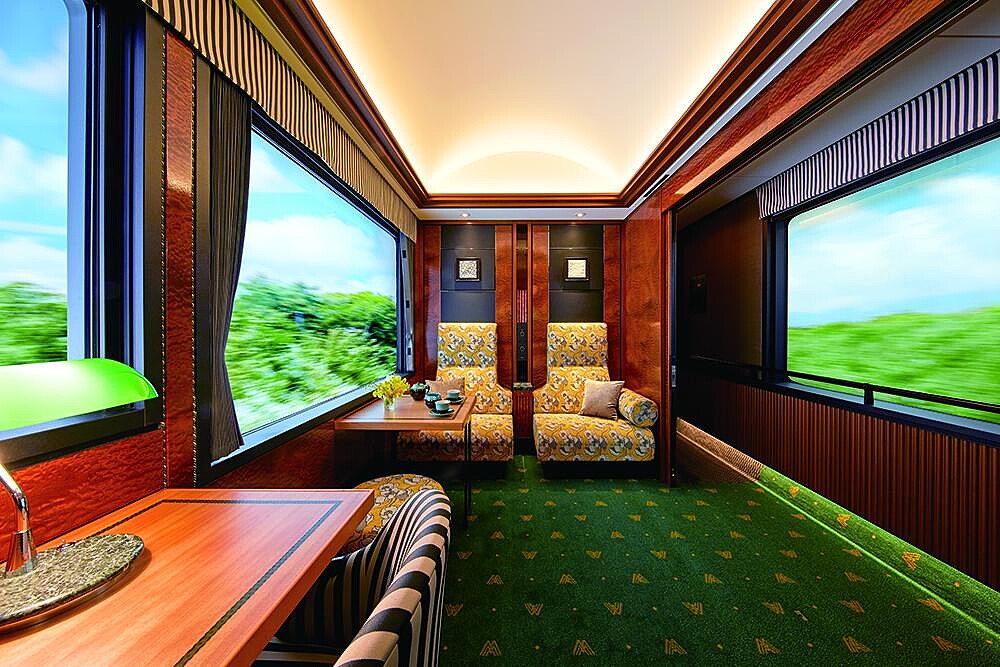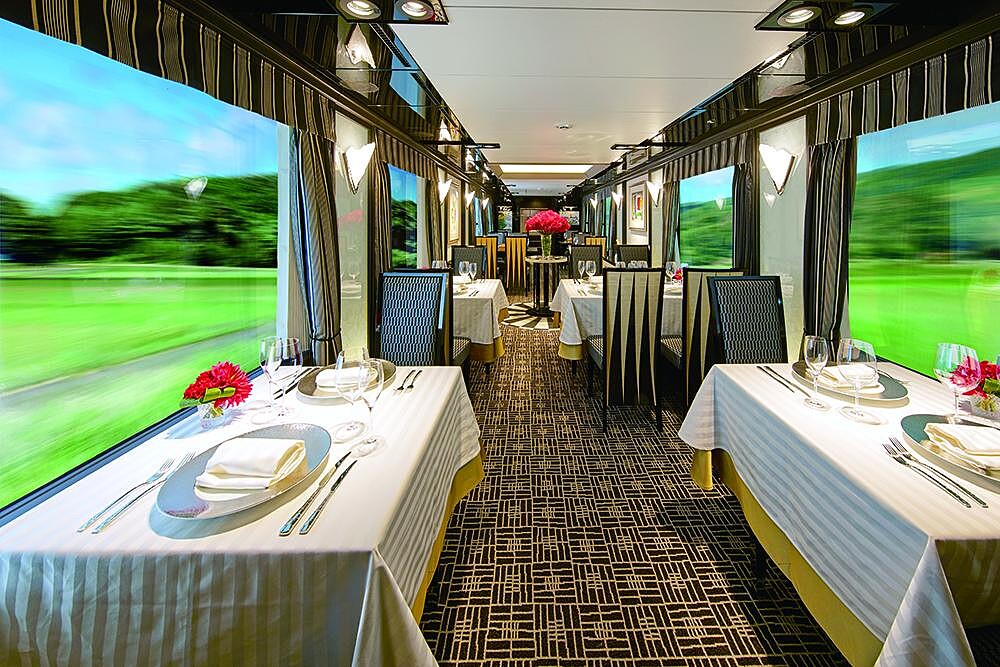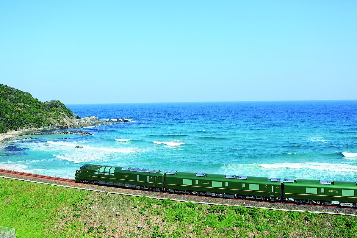 自2017年推出的高端寢台列車「曙光瑞風號」(TWILIGHT EXPRESS MIZUKAZE瑞風),外觀以綠色車身配金色線條勾勒,內裝採用昭和時期藝術風格揉合懷舊與典雅氣質設計,呈現沉穩內斂之美。料理由和食名店「菊乃井」主廚村田吉弘、西式料理HAJIME主廚米田肇監修提供製作高級佳餚,配上每間房間都有專屬觀景窗,奢華旅程全能獨享。