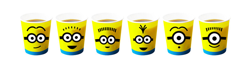 這班小小兵專機值得鐵粉搭乘,從外觀上可以看到他們調皮搗蛋的模樣,走到機艙內後,還可以發現有許多小小兵玩偶出沒在各處,以及座椅頭墊布都是鮮明的小小兵!還有連紙杯、都被攻佔,還一共有6種款式,恨不得要空服員多來幾杯~