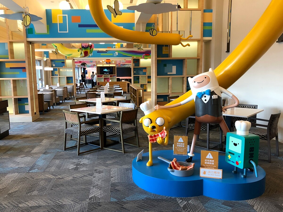 4樓「卡通頻道派對歡樂廚房」除了有自助式的中、西式早餐,也分別規劃3大主題空間,抬頭望或是有超大的裝置佈景,享用美食之餘也能狂拍照。