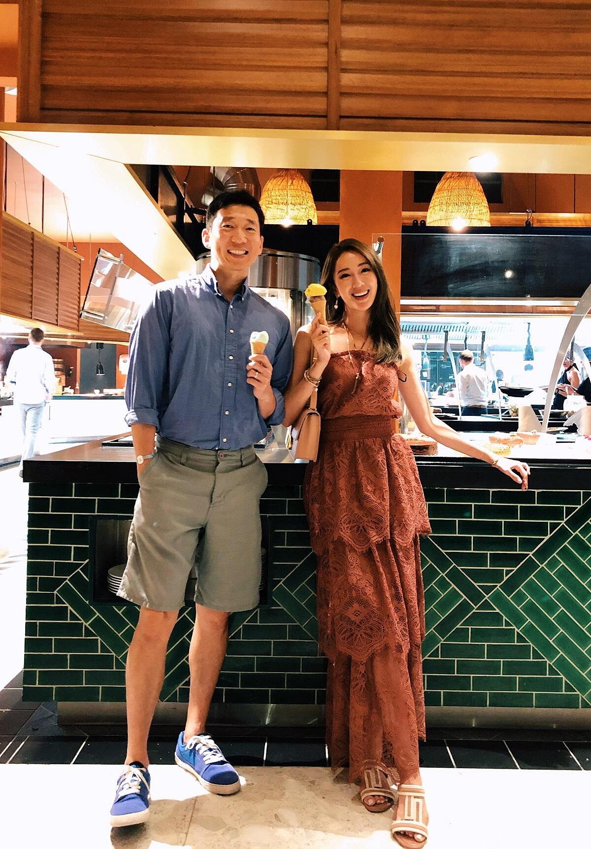 在Club Med每晚都有吃不完的新鮮海鮮,除了自助Buffet外,還有採『Fine Dining』概念的海邊餐廳,現點現做,完全不用擔心肚子餓沒有東西可吃。隋棠和先生還巧遇了Club Med最具代表性的白色派對(White Sensation),這場白色盛宴在泳池旁舉辦,村裡所有人都以全身優雅白裝出席,現場不僅有吃不完的新鮮海膽,還有精彩的空中飛人表演,散發滿滿的法式氛圍。