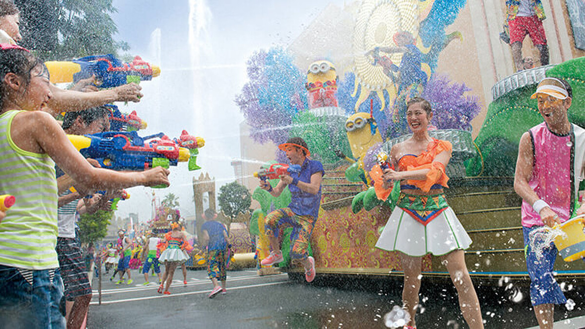 先前才報導過動漫主題祭「Universal Cool Japan」將滿5周年、迎來全新8項遊樂設施,現在又宣布要開「夏日趴」,園區裡會劃分成數塊區域:每天舉行3次,一次約20分鐘的「小小兵清涼時尚秀」,除了噴水外還會有「雪花」飛濺!在這裡可以備好小小兵水槍、護目鏡、雨衣及手機防水袋,甚至有一碰到水就會變成彩虹色的神奇T恤,準備好後就能盡情享受啦!