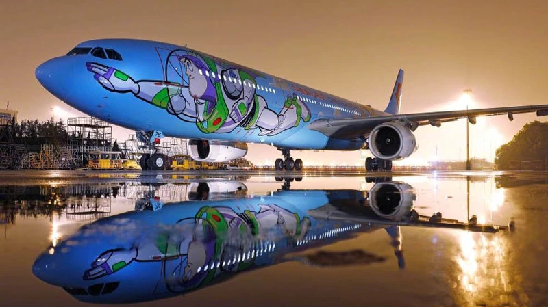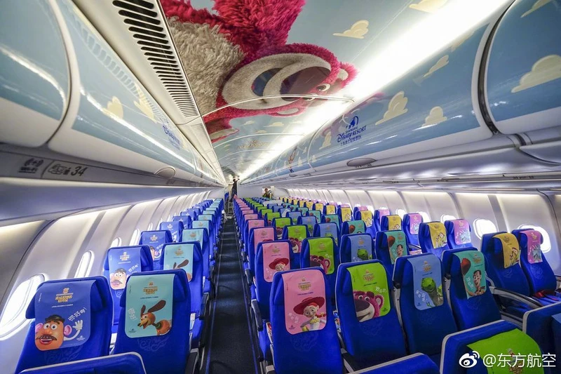 這架飛機是中國東方航空與上海迪士尼合作,在2018年4月推出的專機,整個機身以鮮豔的藍色為主,上面有超大的巴斯光年與胡迪,先前只飛行中國國內線。