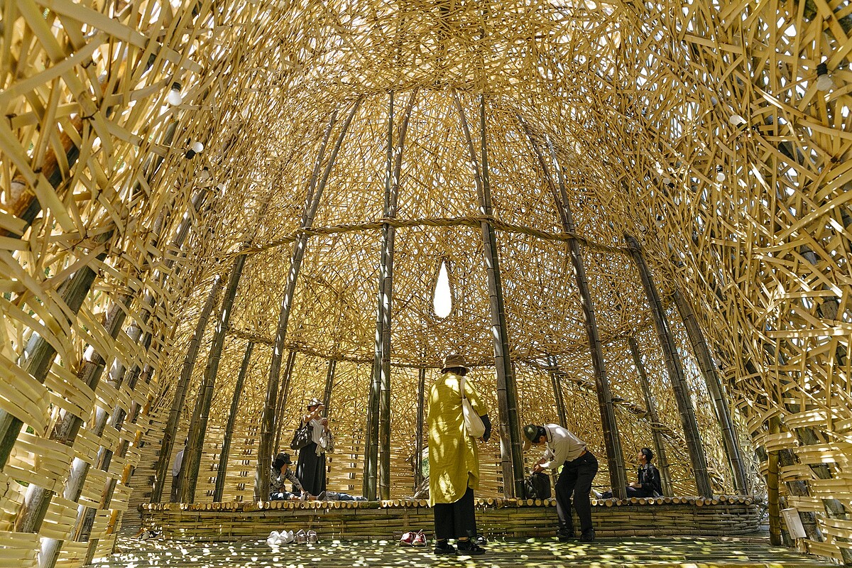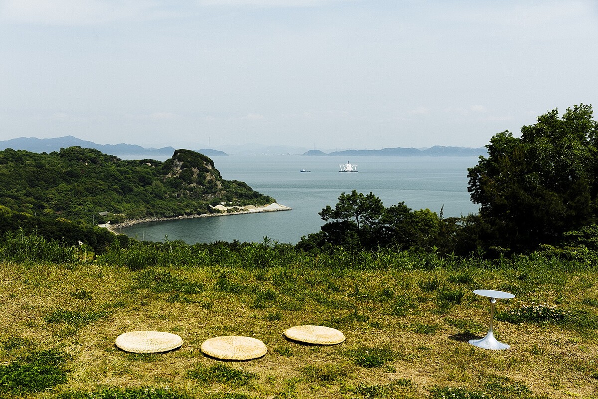首先搭乘前往池田港的長頸鹿造型渡輪,想先看台灣藝術家王文志的作品〈小豆島之戀〉。座落在小豆島半山腰中的梯田底端,上一屆也是在同個地點,在這個以竹子為結構的大型作品內部感受竹子特有的氣味,享受陽光穿透竹間縫隙溫度,王文志特有的水滴外型窗戶非常顯目。