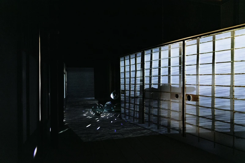 再來是我的重點行程三都半島,這一區很多人口遷出,所以小豆島「家計畫」的展場都在這邊(家計畫是把無人使用的舊屋規劃成藝術展覽)。三都半島果然沒令我失望,作品很集中,品質也很高,在這些作品裡面我最喜歡〈明日之海〉,巧妙地使用日式推門,藝術家把錄像作品投影在上面,海浪彷彿就在這個空間裡不停轉動翻攪;室內另一光源是一盞投在鏡球上的持續光,鏡球反光的閃爍像是宇宙裡的星體,非常迷人。