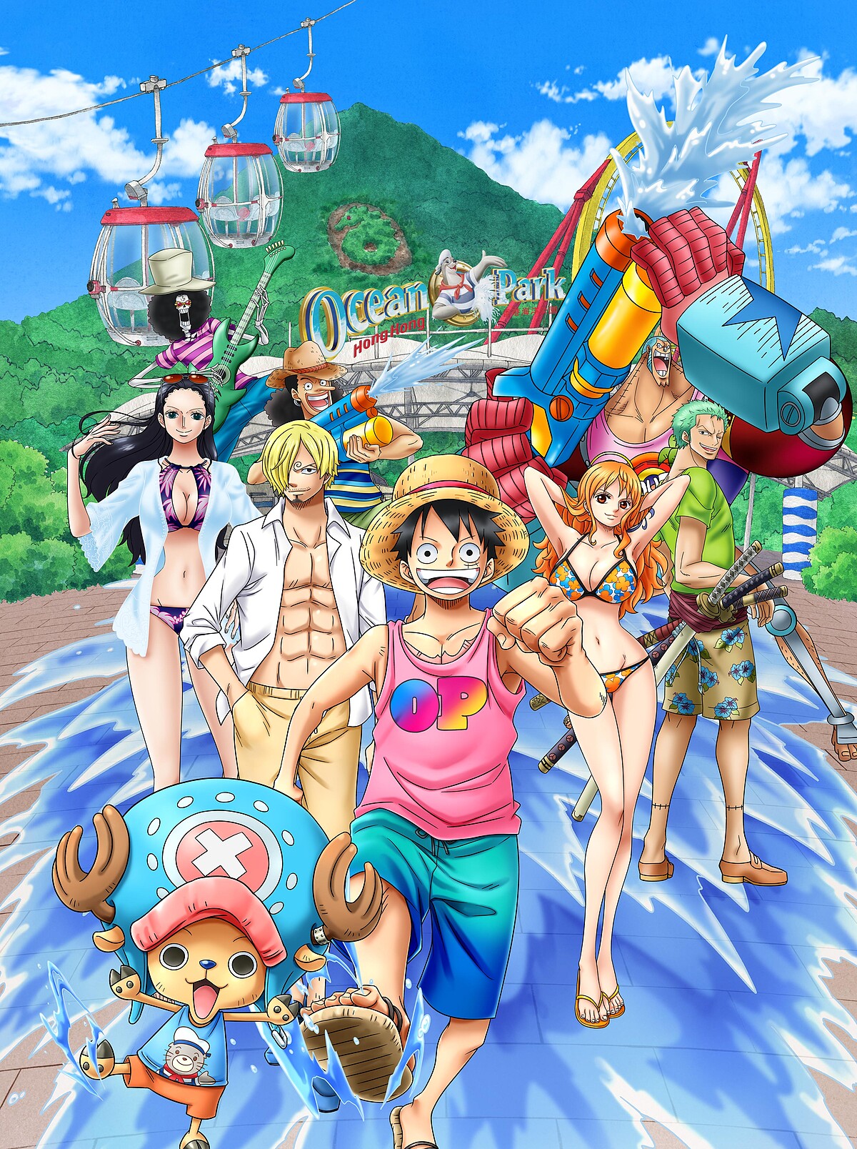 適逢航海王(海賊王,ONE PIECE)推出20年,特地與香港海洋公園,於7/13至9月1日展開「海洋公園夏水戰」。會有7個經典航海王景點與濕身專區,如停泊在夢幻水都人工湖畔的千陽號、一張張海賊通緝令和巨型草帽小子魯夫等。