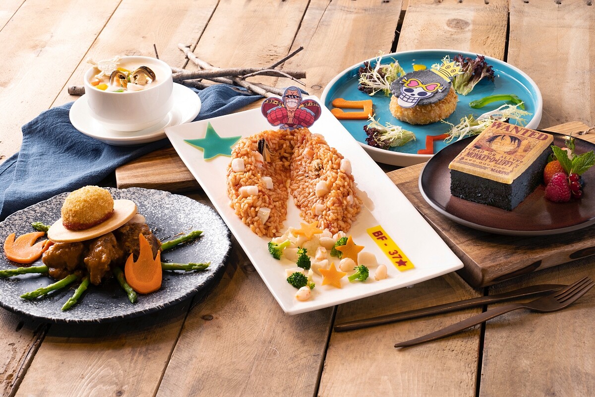 肚子餓的話,就到嵐灣茶座享用期間限定的「航海王航海歷險仲夏大餐」,有跳躍音符形狀的蔬菜、佛朗基猛烈飛拳形狀的燉飯、印有魯夫通緝令的奶油餅乾,或是惡魔果實蛋糕、馬卡龍,身為鐵粉的妳絕對很有共鳴。