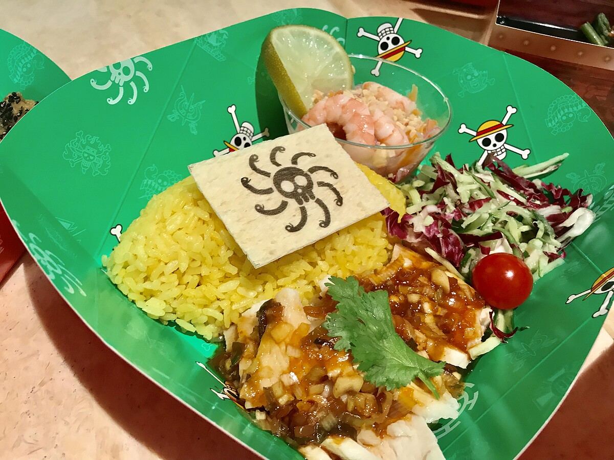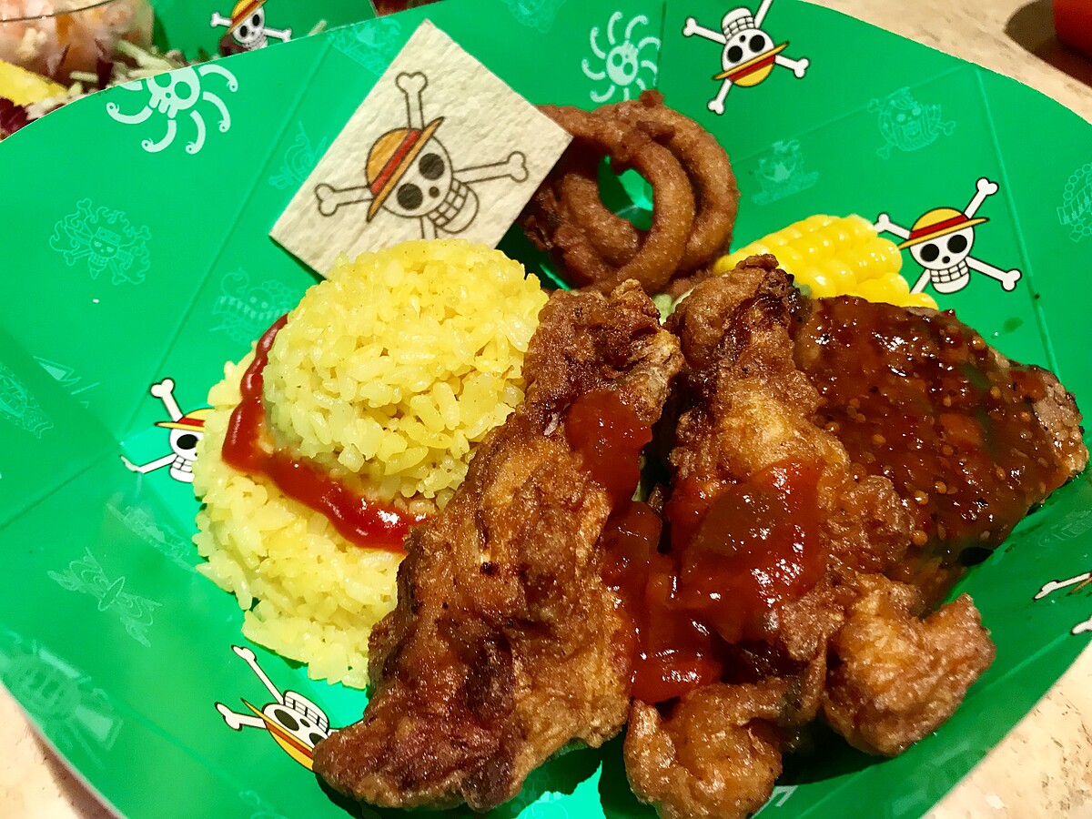 以魯夫經典的草帽製作而成的造型飯,此餐點以肉類為主,完全就是呈現主角魯夫最愛吃肉的特色啊!愛吃肉的人絕對必點~