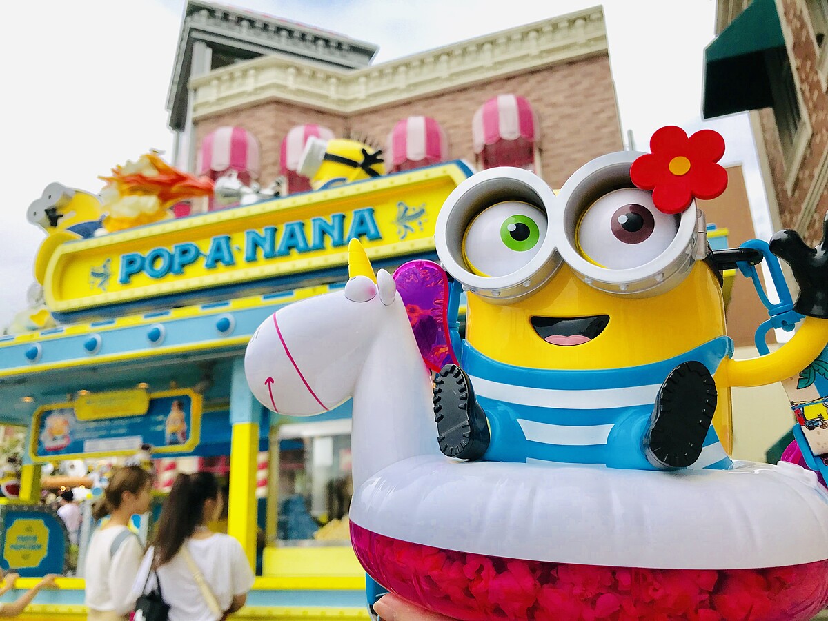 來到日本環球一定要買一個爆米花桶!這次還推出新款小小兵的爆米花桶,坐在泳圈上的Bob太可愛了吧~