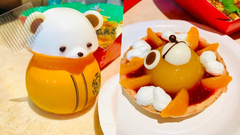 培多上面是白巧克力,但身體的部分居然是果凍超驚喜~千陽號是水蜜桃塔也十分爽口!這次甜點實在是太燒人了啦~