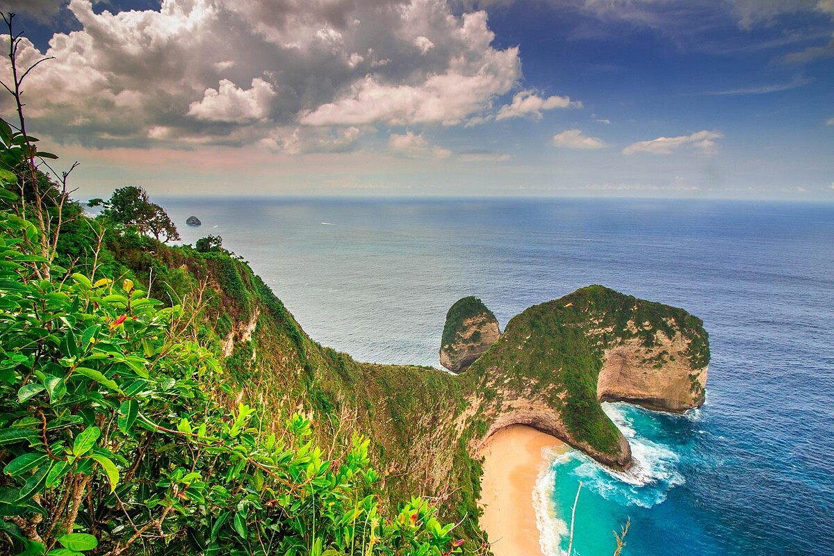 峇里島的離島被譽為有著最美的海景,貝尼島(Nusa Penida)最著名的景點恐龍灣(Kelingking Beach)是海水拍打的礁岩,從高處望去宛如小恐龍一般,但因為水勢湍急,不能走下海灘,只能在置高處眺望。