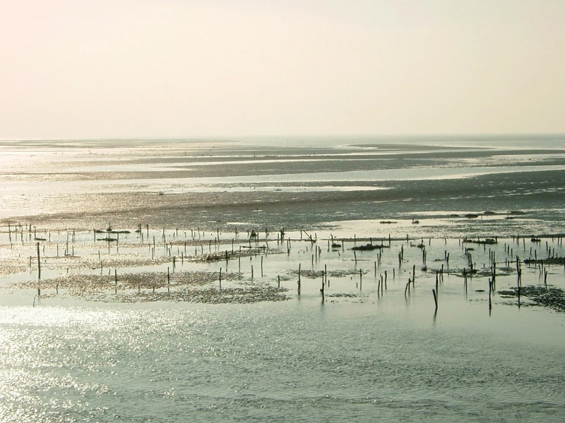 沿著省道台17線沿海路行駛,遠遠便能看到王功地標:芳苑燈塔聳立著。可以沿著芳苑燈塔後方堤岸道路,往新寶村方向走,會看到多年復育成的大片紅樹林,裡面有白鷺鷥等水鳥棲息,是最棒的自然生態教室。