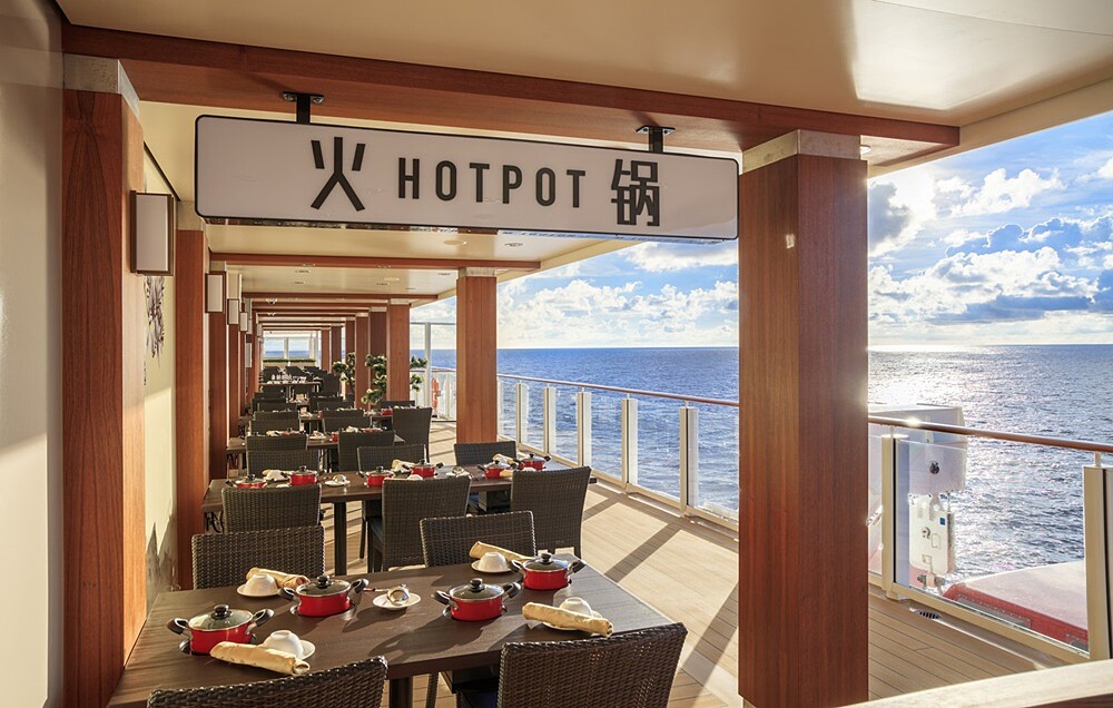 遊覽海上風光,當然少不了美食、美酒相伴!匯集35種餐飲概念,旅客能在「1號扒房」享用菲力牛排、安格斯肋眼;「海珍舫」則能一嚐新鮮海鮮。另外還能在戶外甲板上享用中式風味的戶外火鍋;棕櫚閣、露天吧更有各式香檳、雞尾酒,令海上假期再加分。