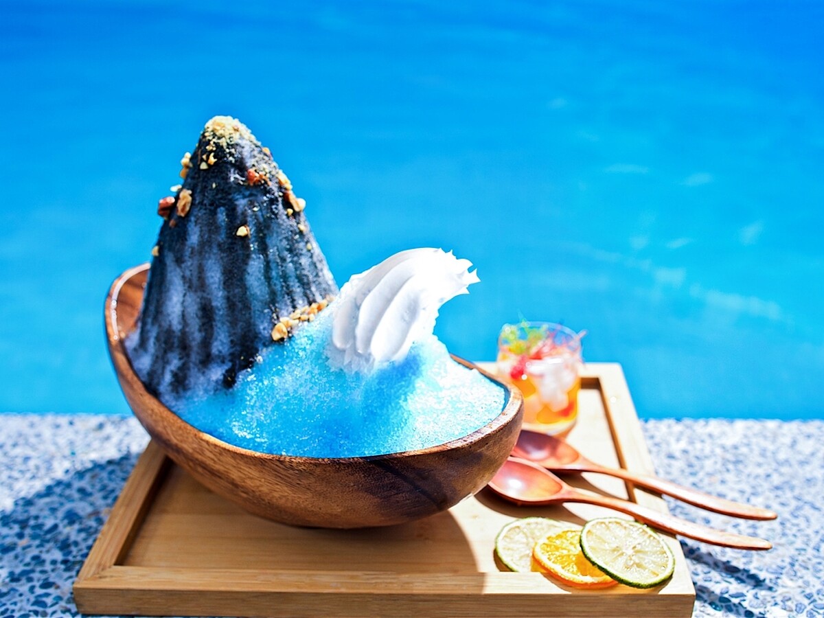若想好好放鬆,不妨在頂樓戶外池畔或多個餐廳內享用夏日限定冰品!像是有以花蓮山海為概念設計的「山海戀」剉冰,由黑芝麻剉冰勾勒出山景,搭配用石花凍、海藻、鹹味鮮奶油製成的浪花,再淋上香甜酒與檸檬汁,相當酸甜清爽。