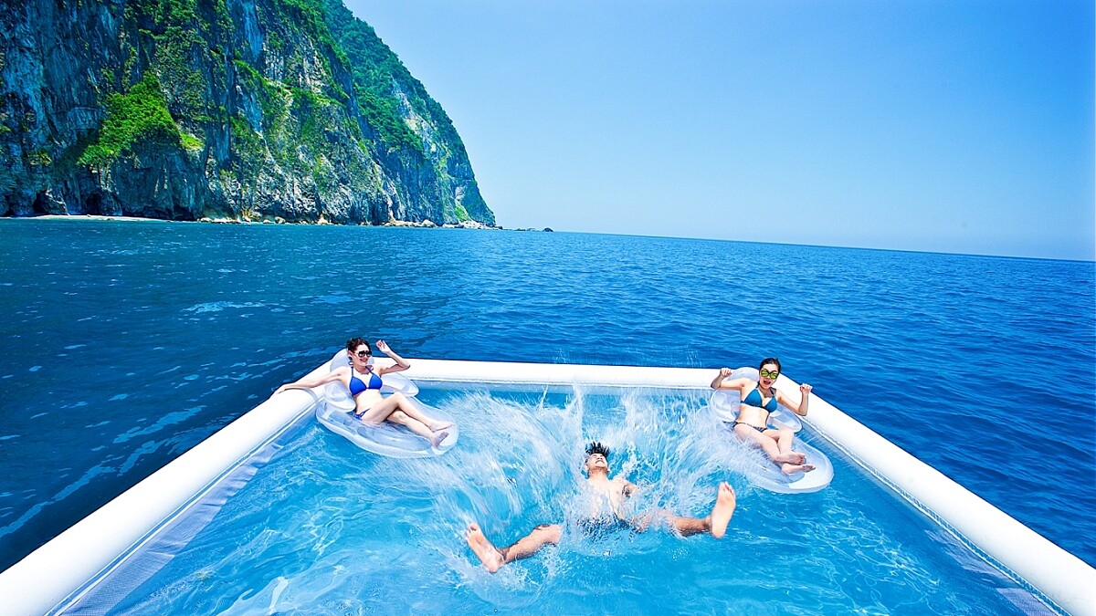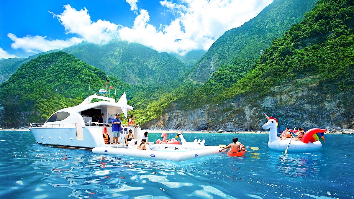 夏天是玩水最好時機,太魯閣晶英規劃兩款水上活動,「海上遊艇+跳海游泳」可以搭乘遊艇欣賞清水斷崖美景,還能跳進海上游泳池,仰望陡峭山壁與海岸景色,另外還有專人服務BBQ,玩累了就直接大嗑烤肉。