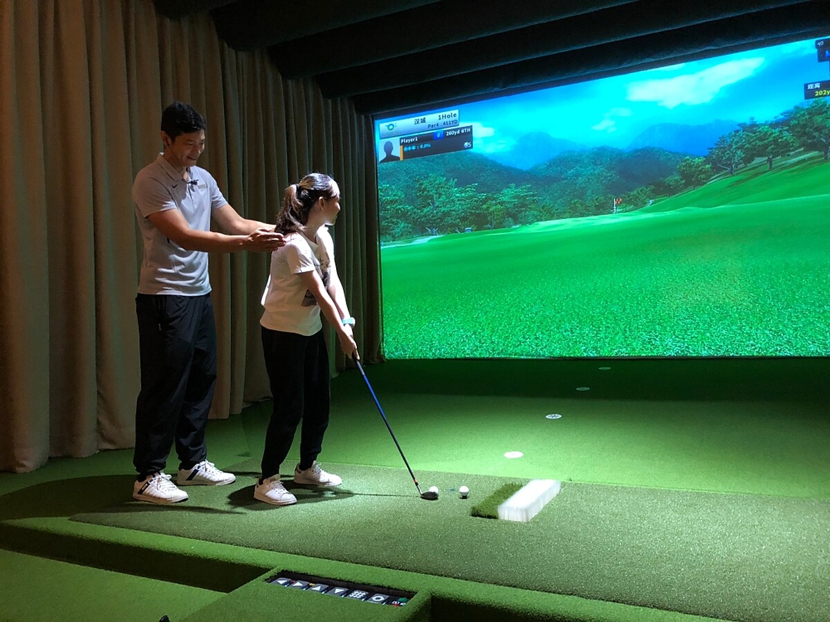 從近300吋的大螢幕,可以選擇暢打世界十八洞球場,或參與世界各國球場賽事。初學者可以從逐洞賽、近洞、遠距或練習場模式開始,一旁也會有教練陪同教學。從30分鐘、1小時、2小時等不同時數分別計費,分別為400~1200元不等。
