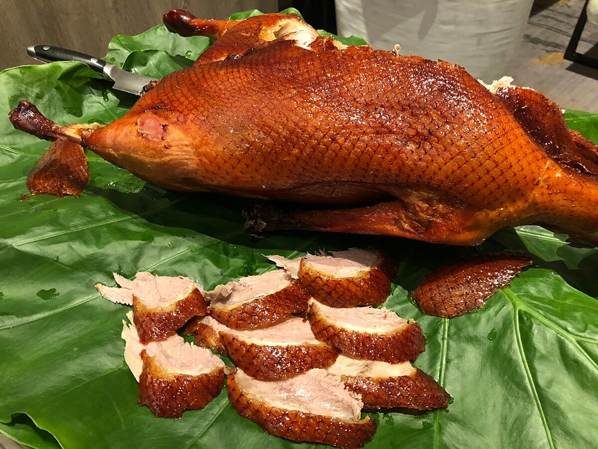 有用越南春捲皮配片鵝的「水晶冷蔬鵝肉香」、港式高溫爐烤2小時的「爐烤薑蔥燒鵝盤」、用義式捲皮甜筒配生菜的「鵝鬆脆香酥甜筒」、酥炸鵝腿拌韓式辣醬的「砂鍋韓風半月鵝」、用日本越光米翻炒而成的「鵝香塩蛋炒珍珠」,以及用中國人蔘鬚與多種中藥材的「人蔘四神鵝架盅」,道道皆顛覆饕客味蕾。