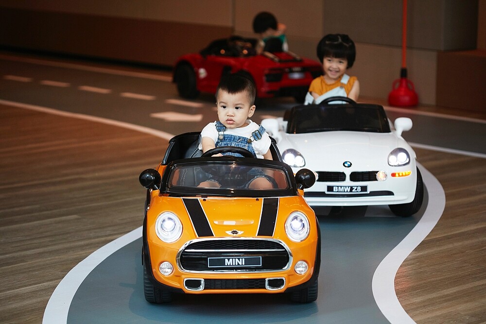 裡頭有用綠色草皮打造、有多項設備的兒童休憩區;還有畫上迷你賽車跑道,能夠一秒變身「小小賽車手 」。另外公益繪畫趣、甩甩扭扭車、指印巧扇等活動都適合親子一同參與。