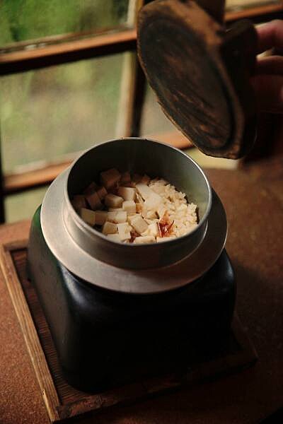 是由兩種港式臘腸、新鮮麻竹筍、花蓮吉安米所組成,現場點火悶煮10分鐘,火熄滅了之後再悶20分鐘才可以開蓋,悶煮的過程充滿竹筍與臘腸的香氣