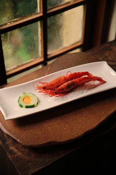 來自台灣東北角的胭脂紅蝦,鮮吃原味的感受一下蝦子鮮甜的肉質,另一隻可以沾取海膽醬食用,濃郁又鹹鹹甜甜的滋味,是許多饕客的最愛!