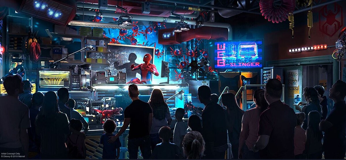 在剛落幕的迪士尼D23博覽會上,公布加州及巴黎迪士尼兩個園區都會有「復仇者校園」。先前因迪士尼與索尼談判破局,蜘蛛人確定退出漫威宇宙,但在主題園區裡仍是必玩重點。名為「WEB(Worldwide Engineering Brigade)」的蜘蛛人實驗室,遊客可以在遊樂設施Web Slinger中,學習射出蜘蛛網、體驗超能力快感。