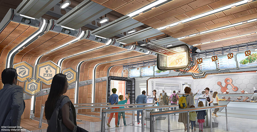 包含蜘蛛人主題實驗室、以《蟻人與黃蜂女》為主題設計的餐廳及禮品店,在電影中佔有重要關鍵皮姆粒子,也成為新餐廳Pym Test Kitchen主菜、甜點設計主軸。附近還有《奇異博士》經典場景「至聖所」晚上更會散發詭譎神秘光芒,相當引人入勝。