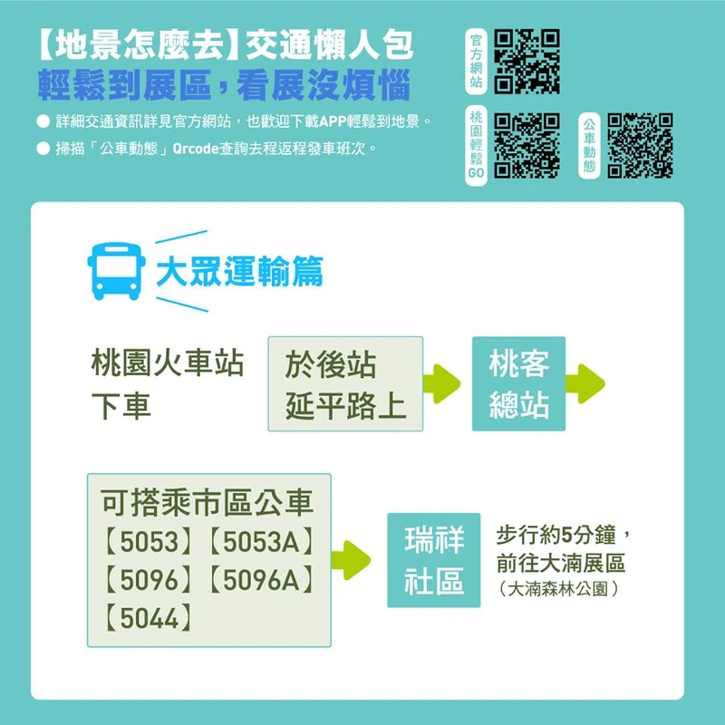 也另有象徵桃園「愛與和平」仙境般的《桃樂源》、展現旺盛生命力的《風彩》。每天晚上還有結合音樂、燈光、投影、AR互動影像的光雕展演《大湳森之光》,更會由「娃娃」魏如萱獻聲導聆揭開序幕,帶領大家一同聆聽大自然的聲音,勢必精彩可期。
