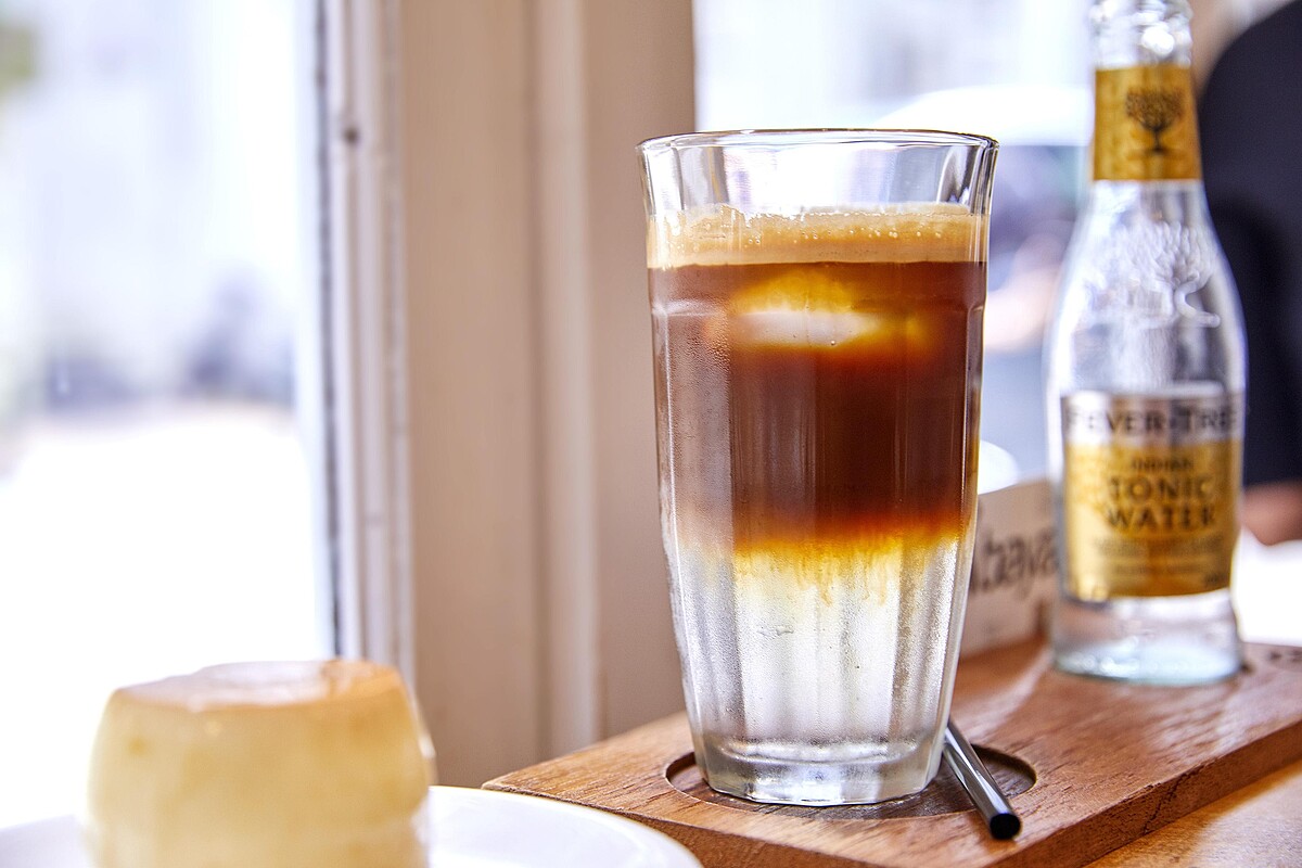 最後點了一杯「Espresso Fizz」將義式濃縮咖啡搭配湯力水(tonic water),再選擇花香圓潤的接骨木花或柑橘清爽的印度湯力水,不少女生想喝咖啡時會擔心,黑咖啡太苦、加奶加糖會胖,Espresso Fizz 正是一個不錯的新鮮選擇,當氣泡基底與咖啡混和後清爽不太甜,就像一款前所未有的新式咖啡。