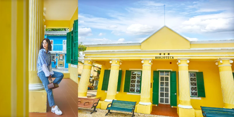 琦琦說喜歡澳門的原因是平常工作滿檔,只要抽出三天兩夜的時間就能在澳門飽覽美景,這裡雖不大卻擁有許多的文化遺產,踏入澳門就能有環遊世界的感覺。這次就讓我們來追尋那抹令人印象深刻的嫩黃,離開充滿人潮的觀光區抵達「路環圖書館」就像來到世外桃源,來這裡每天的#ootd照都是超吸睛啊。