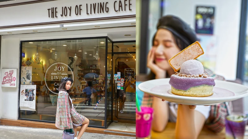 「樂點咖啡The joy of living cafe」的精神就是帶給大家獨特且天然的甜點,這款招牌甜點「流心紫薯熱鬆餅」真的是吃過就會驚呼「再也吃不到了怎麼辦!」老闆說都是他們每天親自蒸好紫薯,從上面的紫薯冰淇淋到切開滿滿的流心餡都是手作,在外面絕對吃不到一樣的口味,再將杏仁碎片搭配鬆軟的熱鬆餅之上,一口吃下紫薯滿滿的豐富口感,絕對是視覺跟味覺都滿分的甜點極品。