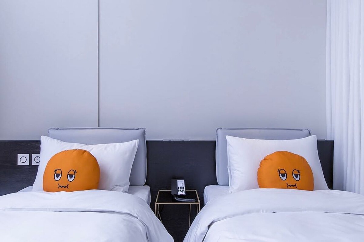 除了飯店外,內部也有許多裝置藝術,入住的旅客甚至能夠抱著「誠實君」一同入眠。搶眼的顏色與可愛模樣,已經吸引許多網美朝聖,不論是走過、路過,絕對都要拍起來!