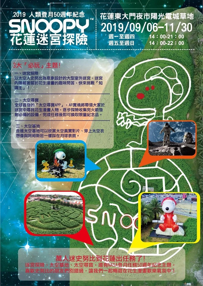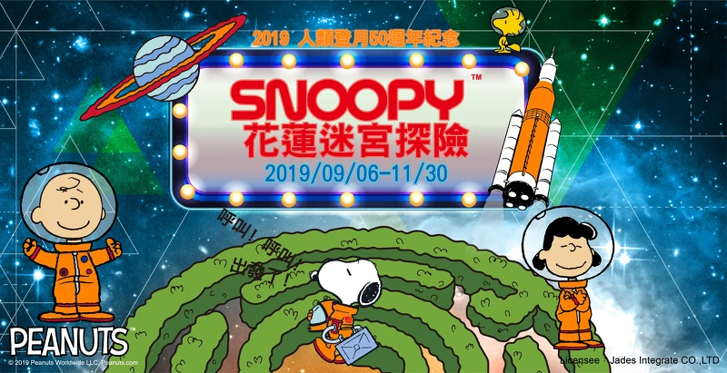 呼叫全台史努比迷!「Snoopy太空城市探險:人類登月50週年紀念月」來花蓮啦!有首座「史努比迷宮」、巨大太空人史努比,絕對失心瘋~