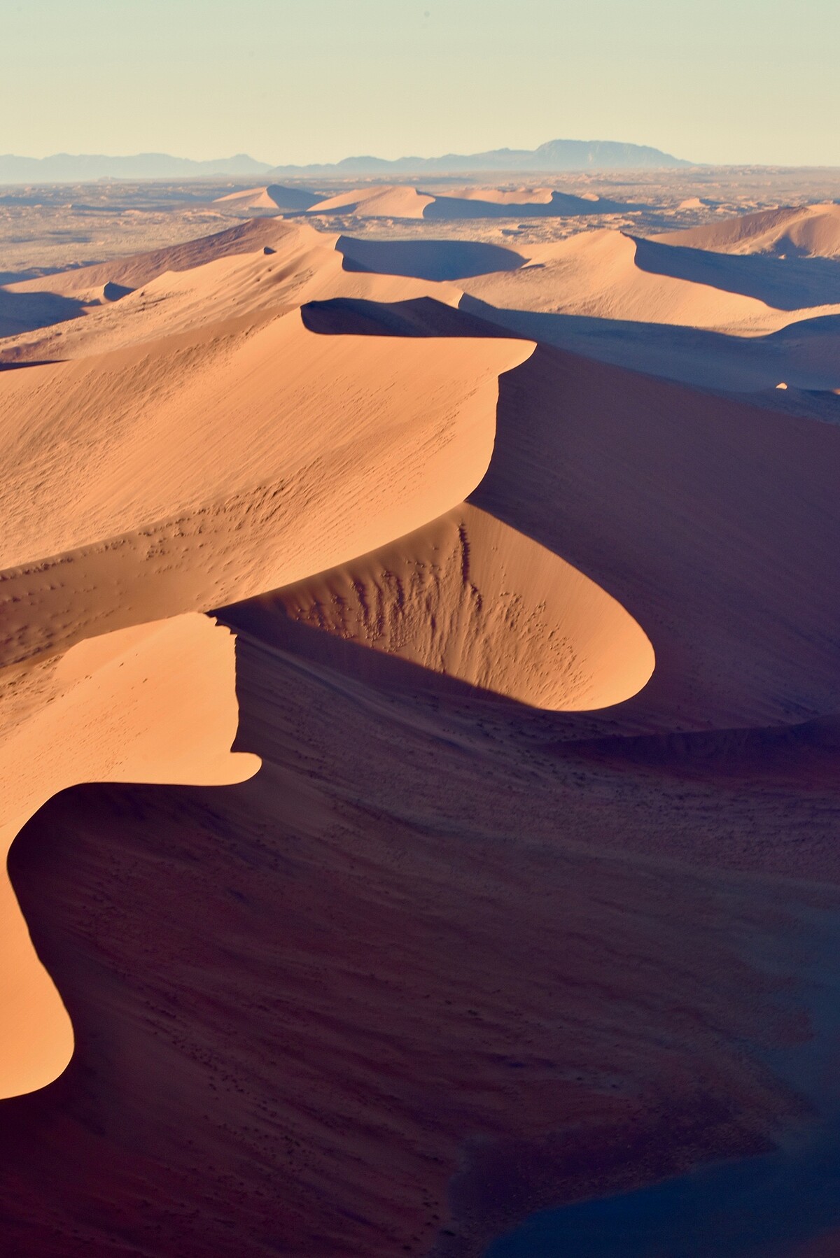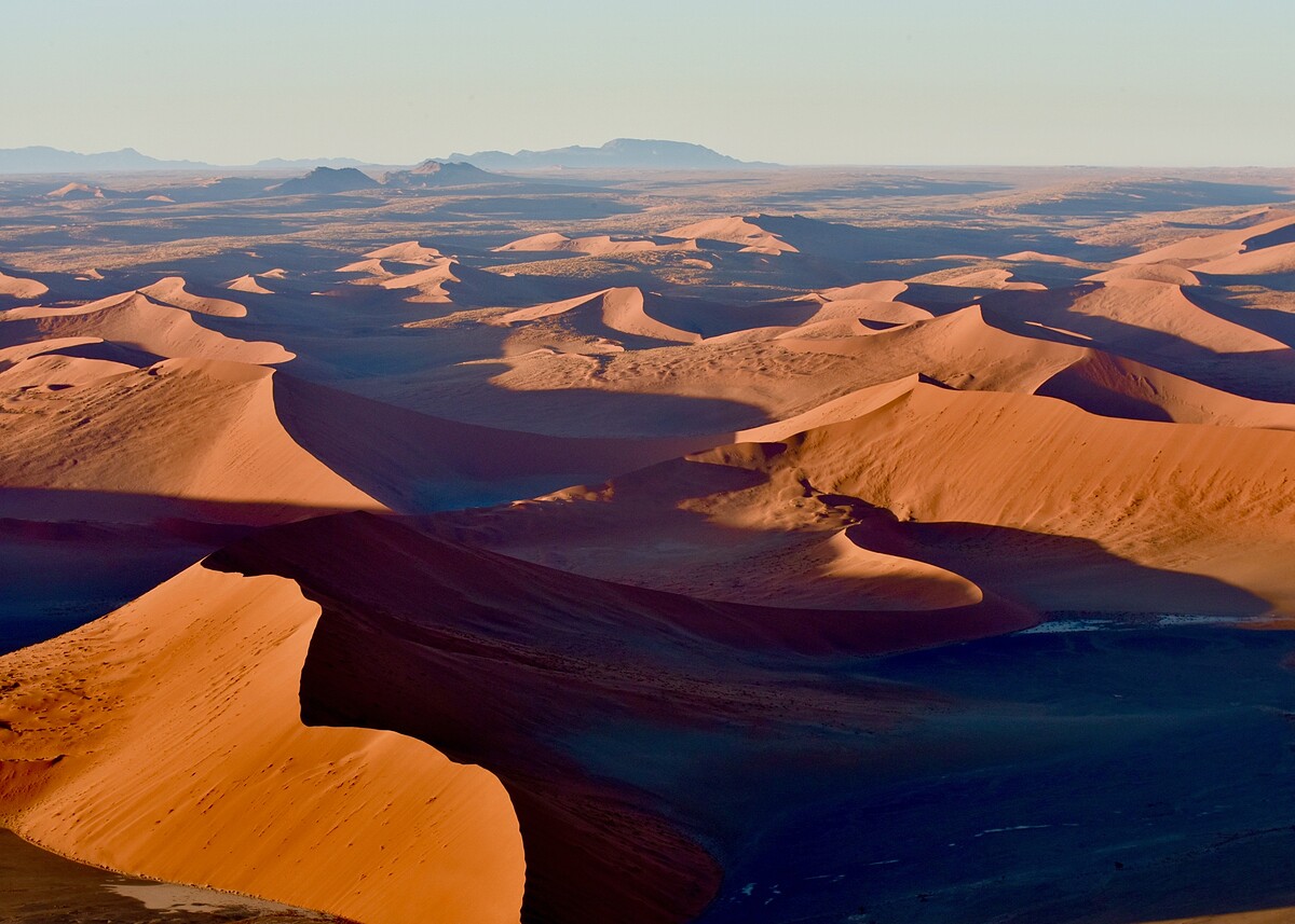 我們是從約堡先飛抵納米比亞首都溫德和克,再轉小飛機飛比紅色沙漠區的索蘇維來(Sossusvlei),沿途空中景緻,就讓人深深著迷,綿延不盡的荒漠曠野,好像進入全然不同孤獨世界,讓我停不下的猛按相機快門。