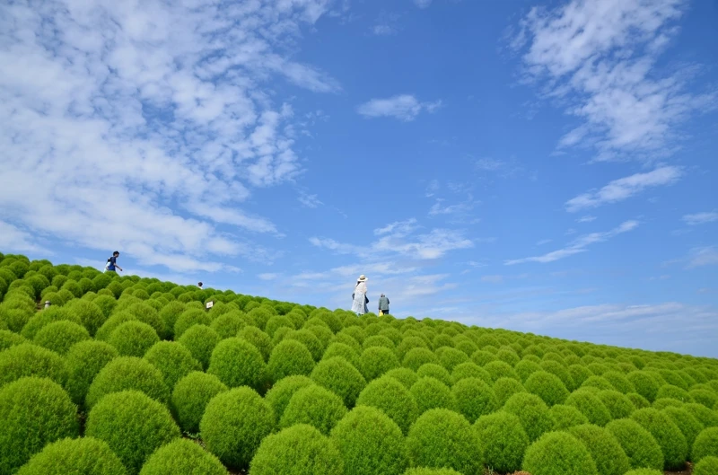 說到賞波波草,首選絕對是日本東京茨城縣國營常陸海濱公園!一年四季都盛開著不同的花種,從7月開始手工栽種約有33000棵的掃帚草,顏色在9月底會逐漸轉紅,10月中會完全變色,從一片綠油油變成「火紅花海」!