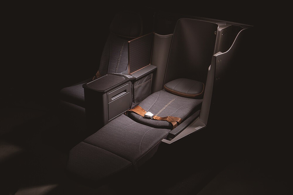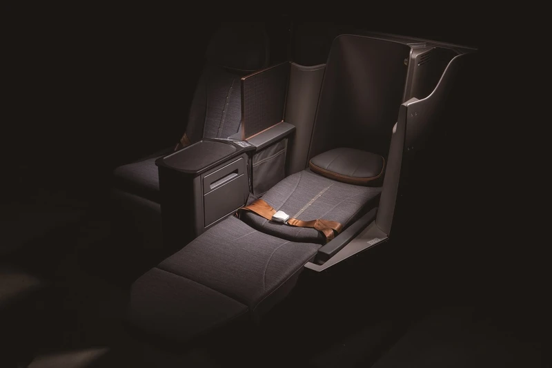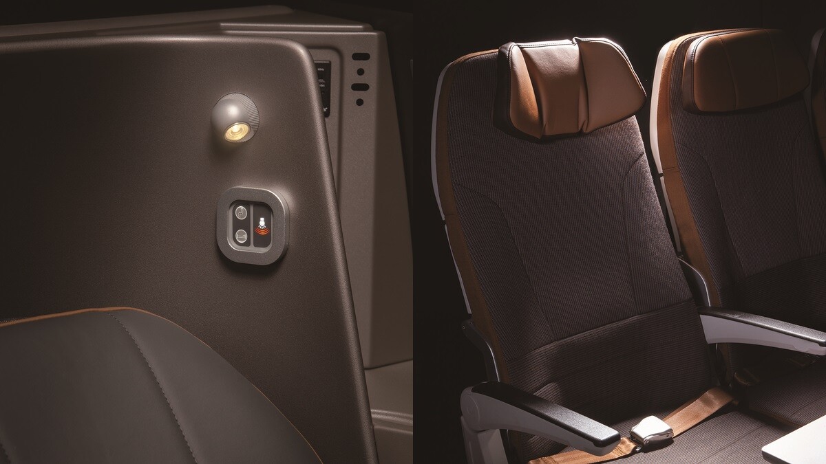 商務艙更是國內首創窄體客機全平躺商務艙座椅,最長可伸展208公分,可以180度平躺休息,也用銀光色澤、玫瑰金屬點綴座椅隔板與收納空間。經濟艙用多色編織工法呈現流線花紋,新式的「超薄椅背」結構則增加腿部空間,不怕膝蓋會卡到前方椅背。也有窄體機少見的皮質頭靠,不需要頸枕也能安穩入眠。