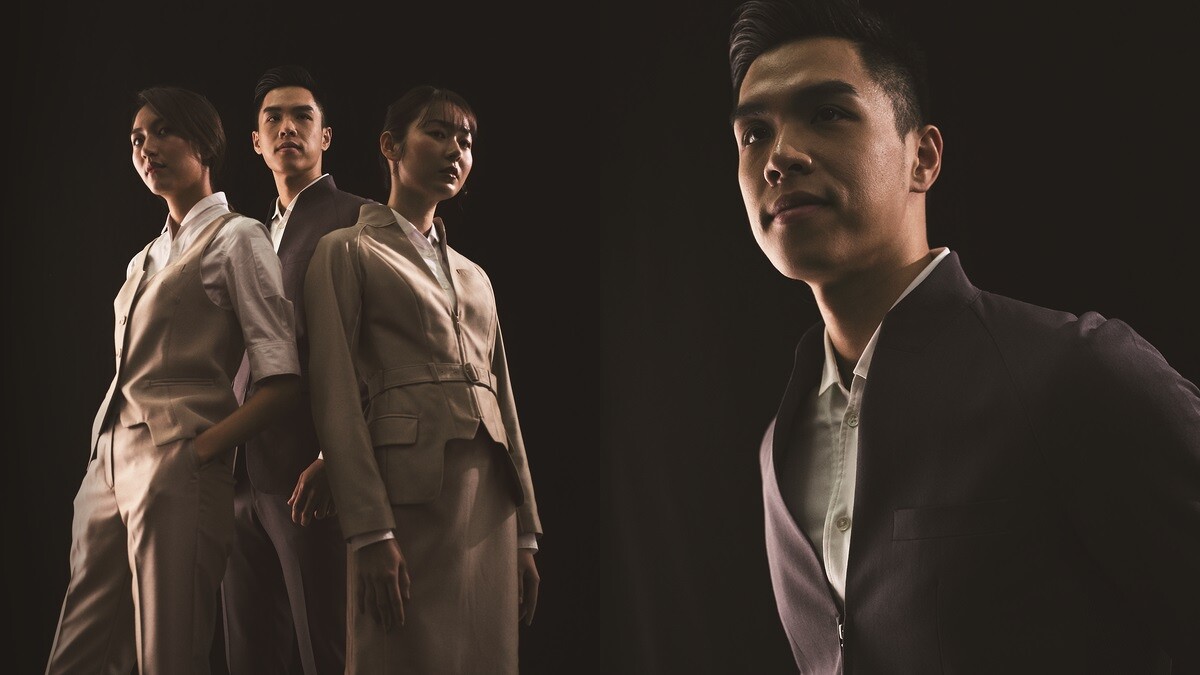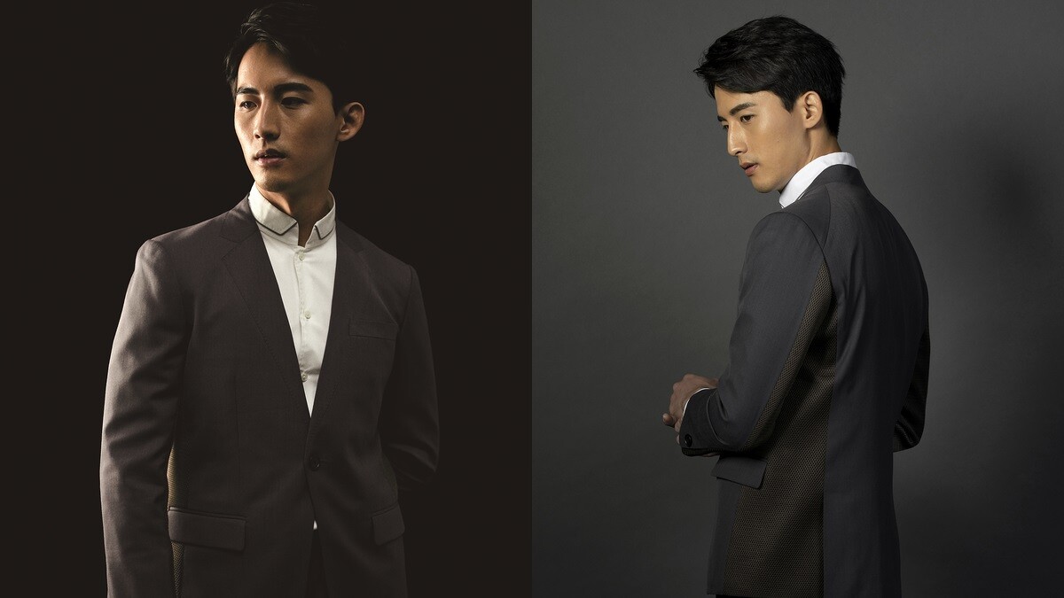 男性空服員則取消領帶,用立領設計、拼接裁片呈現如翻領的樣式,接縫處則用出芽線條點綴;西裝外套領口也用細膩工法拼接領片,既方便又具有錯視的立體感。
